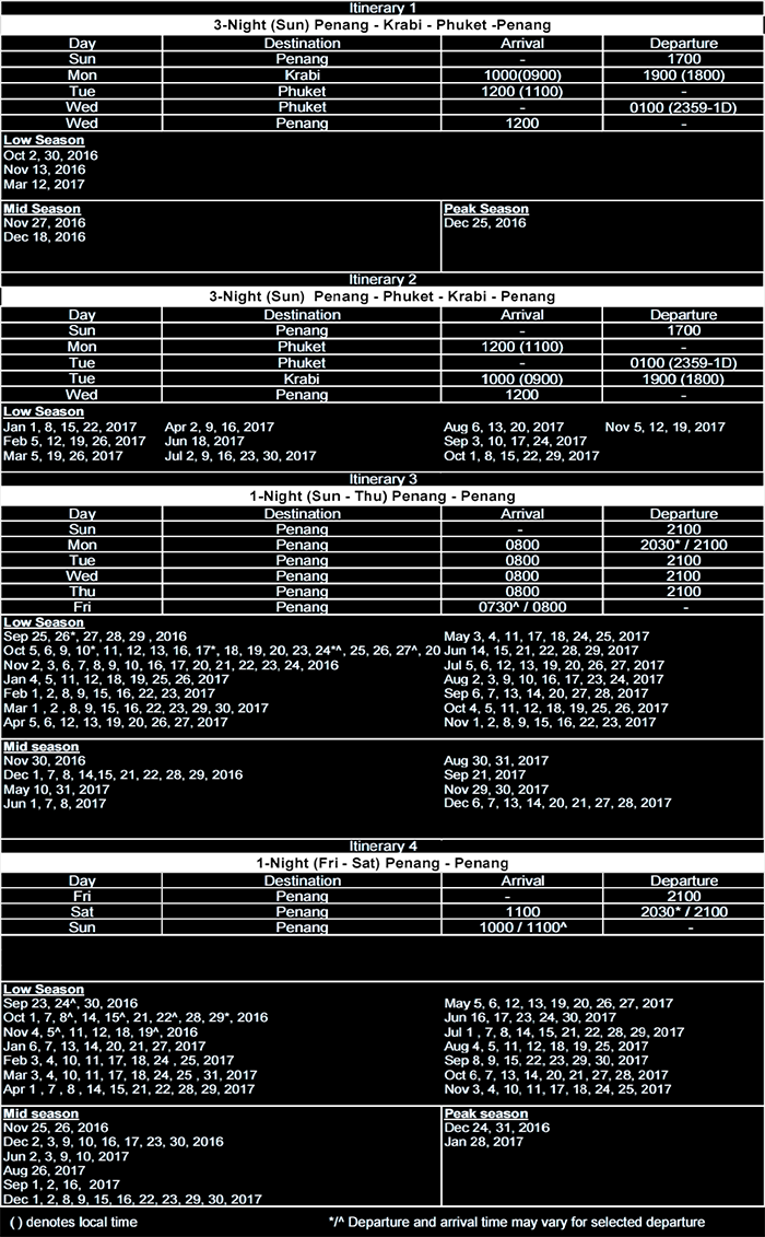 5. Berthing time may change subject to the availability of berths at different ports. Notice of the time changes will be given one week prior to departure.